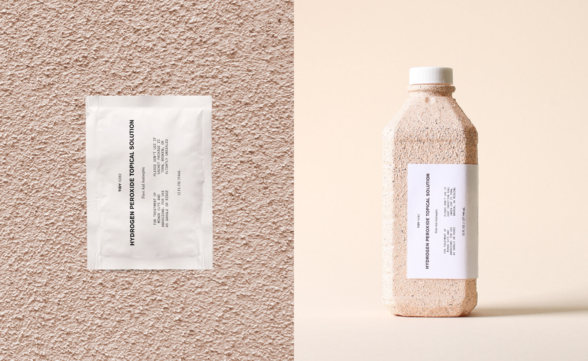Our main goal with the Tidy Products’ branding and packaging was to create an elevated and sophisticated visual aesthetic for a classic product. We achieved this by using the strong juxtaposition between rough textures, which is usually what causes scrapes or cuts; and clean and transparent liquid, which typically cleans and heals those scrapes or cuts.